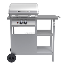 Structure en acier inoxydable Barbecue d'extérieur Barbecue Barbecue à gaz 2 brûleurs Plaque chauffante à gaz Étagère latérale Chariot d'armoire avec roue