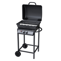 Barbecue d'extérieur noir mat, gril à gaz à 2 brûleurs, étagère latérale, chariot d'armoire avec roue